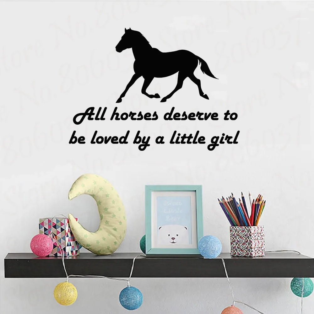Autocollants Muraux Cheval Citation Tous Les Chevaux Meritent D Etre Aimes Par Une Petite Fille Autocollants Muraux En Vinyle Animal Pour Pepiniere Wl1332 Aliexpress Maison Animalerie